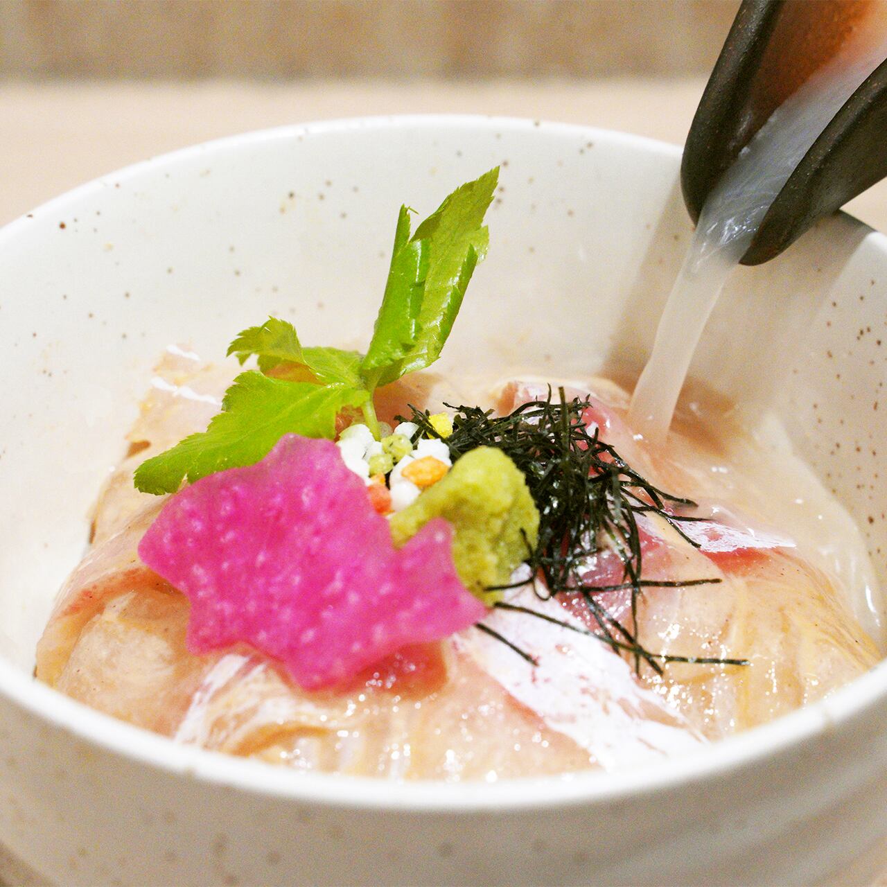 白御飯の上に漬け込んだ鯛をそのままのせ、薬味や卵黄などをトッピングし丼にしてお召し上がりください。付属の鯛出汁はスープとしても美味しく召し上がれます。